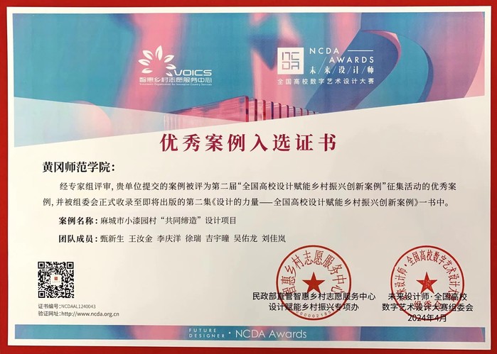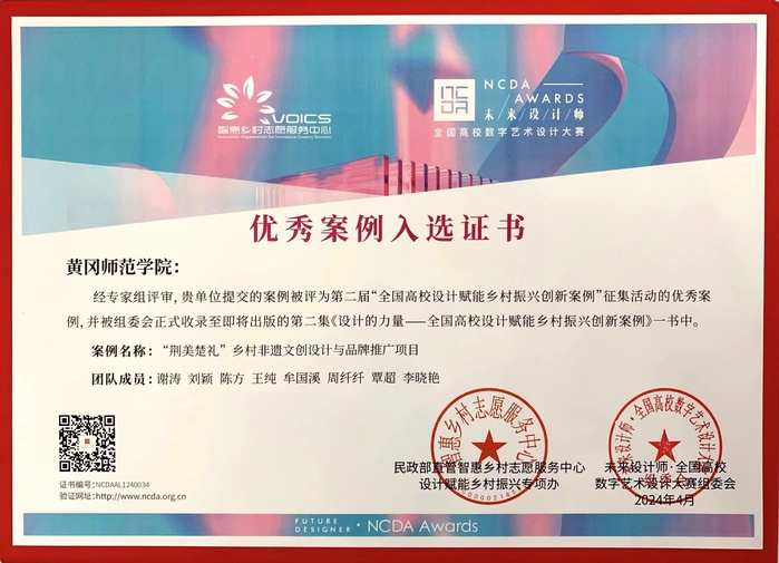 据悉,“全国高校设计赋能乡村振兴创新案例”征集活动由民政部直管智惠乡村志愿服务中心和未来设计师大赛(教育部A类学科赛事)组委会联合举办,鼓励高校设计学科赋能乡村振兴,发挥学科竞赛“立德树人”功能,得到“学习强国”学习平台,人民网,新华网,半月谈等媒体的报道和展播。第二届“全国高校设计赋能乡村振兴创新案例”湖北省高校案例仅入选22个。