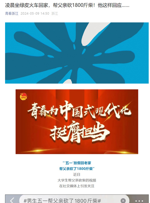 在薛炜发的砍柴视频中,薛炜写道,“莫欺少年穷,终有一天,我也会搬进属于自己明亮宽敞的大房子,买到下雨可以畅通出行的小汽车,冬天不用烧火炉有暖暖的空调,不会再砍柴劈柴、步行回老家……但会一直保留父亲身上的那份勤劳。”众多网友在视频下留言,“我多干一点,爸妈就会少做一些!”“这才是五一劳动节的意义,非常正能量。”