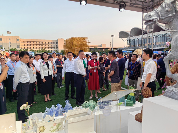 本网讯 6月12日,由教育部、湖北省政府主办,湖北省教育厅、襄阳市政府承办的全国第七届大学生艺术展演活动在襄阳开幕。我校选送的系列雕塑《美好生活》十余件作品亮相“你好!大艺村”艺术创意作品展,校党委常委、副校长胡国珍受邀观看开幕式展演。
