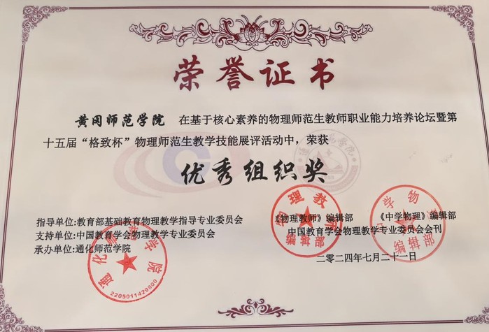 【黄师荣誉】我校学子在全国第十五届“格致杯”物理师范生教学技能展评活动中喜获佳绩