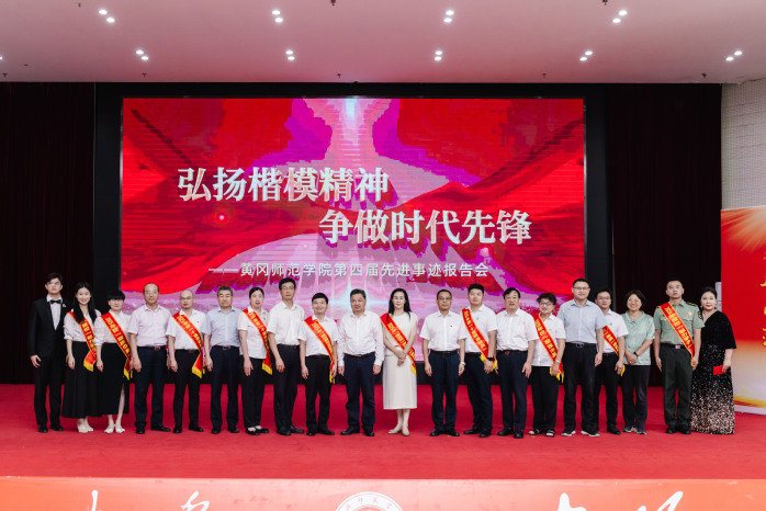 陈向军指出,伟大出自平凡,英雄来自人民,把每一项平凡工作做好就是不平凡。我们一定要以身边典型为榜样,把个人的奋斗融入学校发展的大局之中,强化担当,敢为人先、敢于扛事,在立德树人主阵地、科技创新最前沿、创新创业第一线、服务地方大舞台中争创新业绩。他寄语大家要坚定理想信念,筑牢信仰之基,争做立德树人的时代先锋;要提升数字素养,练就过硬本领,争做追求卓越的时代先锋;要矢志改革创新,服务发展大局,争做担当奉献的时代先锋。他号召全校师生以此次报告会为新的起点,向模范看齐、与先进同行,让劳模精神、劳动精神、工匠精神与教育家精神在黄师薪火相传,让“对标先进、争创一流”在黄师蔚然成风,奋力谱写学校高质量发展的崭新篇章,以优异成绩迎接建校120周年!